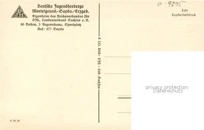 Sayda Jugendherberge Mortelgrund Sayda postalisch nicht gelaufen 1921-1965 Erhaltung siehe scans [KathaD81] Kathoren