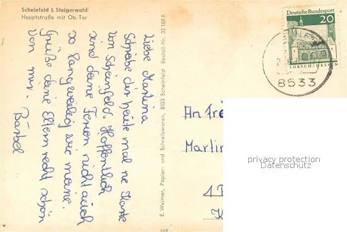 Scheinfeld Hauptstrasse mit Ob. Tor Scheinfeld postalisch gelaufen nach 1965 Erhaltung siehe scans [LiesaD40] LiesID40