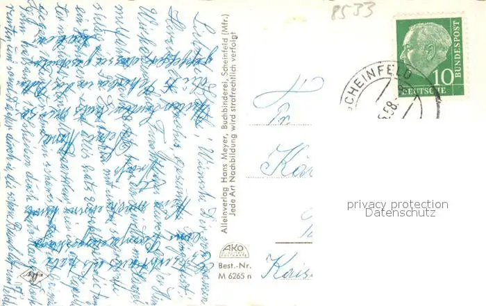 Scheinfeld Panorama Schloss Kirche Scheinfeld postalisch gelaufen 1958 Erhaltung siehe scans [KathaD81] Kathoren