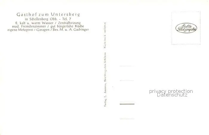 Schellenberg_Marktschellenberg Gasthof zum Untersberg Alpen Schellenberg postalisch nicht gelaufen nach 1965 Erhaltung siehe scans [FriedD77] Frierer