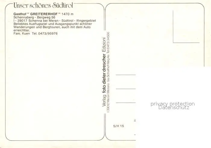 Schenna_Meran Gasthof Greitererhof Schenna Meran postalisch nicht gelaufen nach 1965 Erhaltung siehe scans [WerneD78] WernPID7