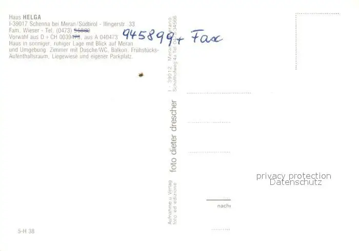 Schenna_Meran Haus Helga Schenna Meran postalisch nicht gelaufen nach 1965 Erhaltung siehe scans [KathaD81] Kathoren