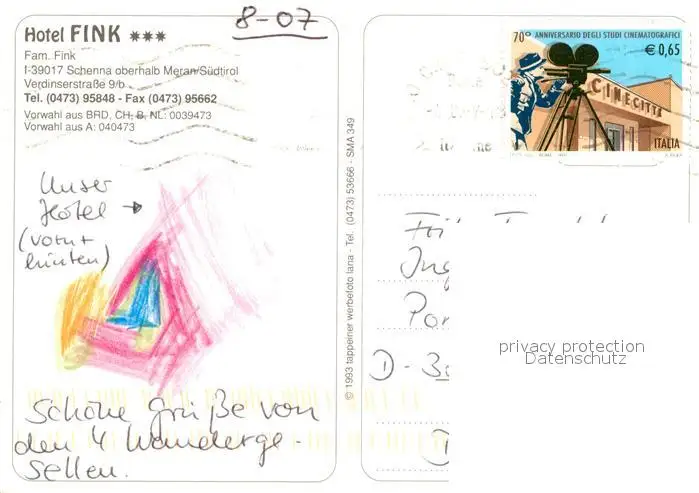 Schenna_Meran Hotel Fink Schenna Meran postalisch gelaufen 2007 Erhaltung siehe scans [WerneD78] WernPID7