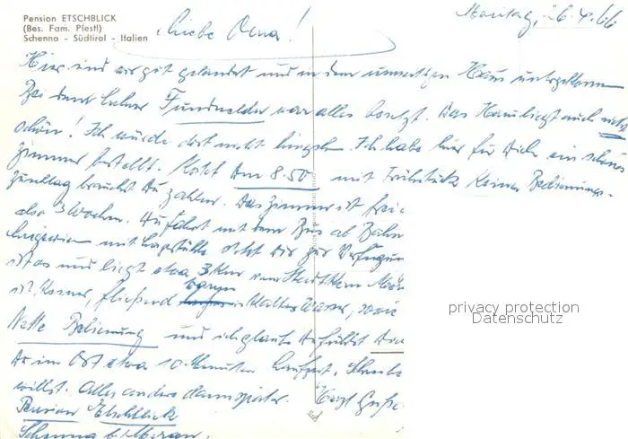 Schenna_Meran Pension Etschblick Schenna Meran postalisch nicht gelaufen 1966 Erhaltung siehe scans [NatalD47] NataID47
