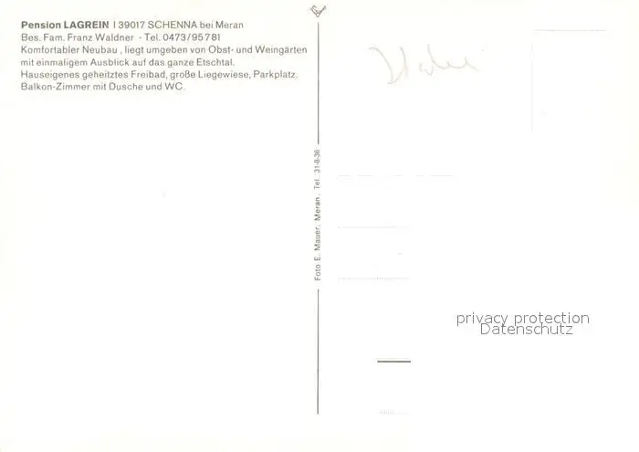 Schenna_Meran Pension Lagrein Pool Schenna Meran postalisch nicht gelaufen nach 1965 Erhaltung siehe scans [WerneD78] WernPID7