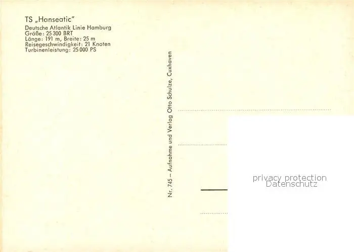 Schiffe_Ships_Navires TS Hanseatic Schiffe_Ships_Navires postalisch nicht gelaufen nach 1965 Erhaltung siehe scans [PaolaD17] PaolPID1