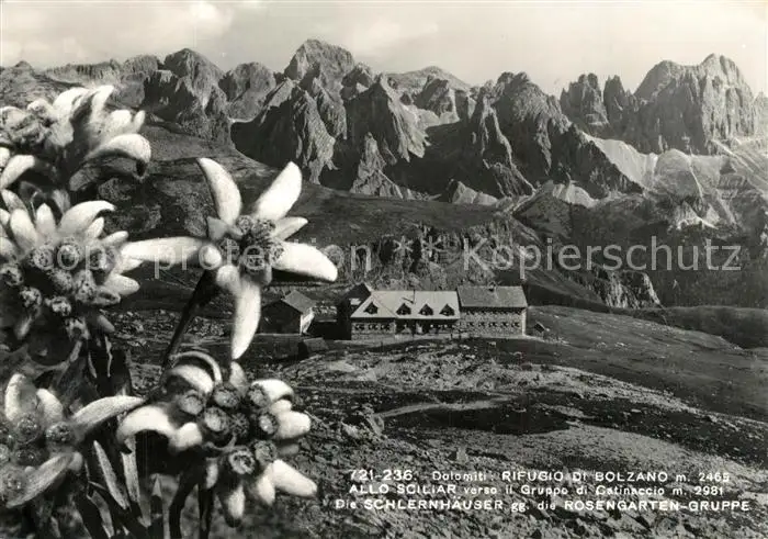 AK / Ansichtskarte Schlernhaeuser gegen Rosengartengruppe Dolomiten Schlernhaeuser