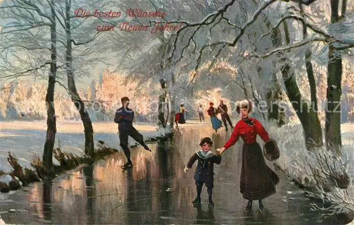 Schlittschuhlaufen_Eislaufen Neujahr Muff Kind postalisch gelaufen bis 1920 Erhaltung siehe scans [PaolaD17] PaolPID1