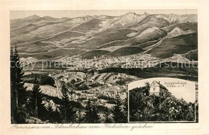 Schreiberhau_Niederschlesien Panorama Hochsteinbaude Schreiberhau postalisch nicht gelaufen 1921-1965 Erhaltung siehe scans [KathaD81] Kathoren