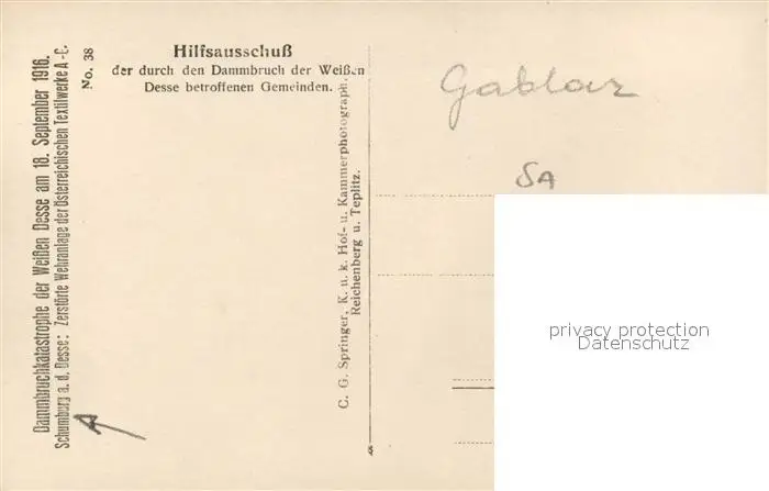 Schumburg Dammbruchkatastrophe der Weissen Desse Schumburg postalisch nicht gelaufen 1916 Erhaltung siehe scans [FriedD77] Frierer