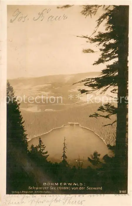 Schwarzer_See_Boehmerwald_CZ Von oben gesehen postalisch gelaufen bis 1920 Erhaltung siehe scans [LiesaD40] LiesID40