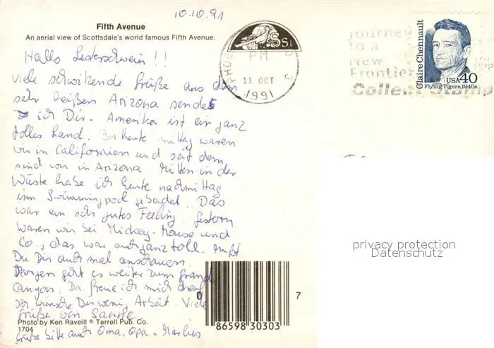 Scottsdale Aerial view of famous Fifth Avenue Scottsdale postalisch gelaufen 1991 Erhaltung siehe scans [FriedD77] Frierer