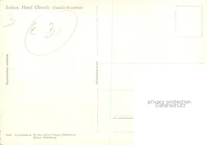 Sedrun Hotel Oberalp Sedrun postalisch nicht gelaufen nach 1965 Erhaltung siehe scans [LiesaD40] LiesID40
