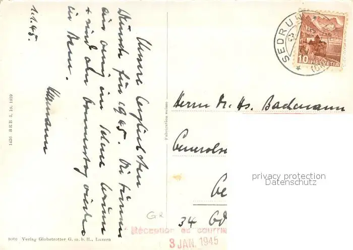 Sedrun mit Quolm Val und Crispalt Sedrun postalisch gelaufen 1945 Erhaltung siehe scans [WerneD78] WernPID7