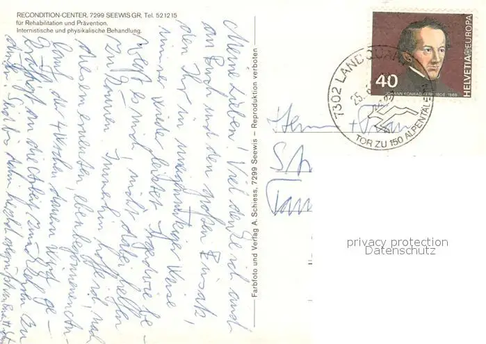 Seewis_GR Recondition Center postalisch gelaufen nach 1965 Erhaltung siehe scans [FriedD77] Frierer