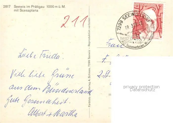 Seewis_GR Scesaplana Seewis_GR postalisch gelaufen 1979 Erhaltung siehe scans [KathaD81] Kathoren