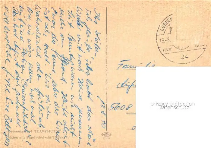 Segelschiffe Passat Travemuende Hafen Segelschiffe postalisch gelaufen 1970 Erhaltung siehe scans [PaolaD17] PaolPID1