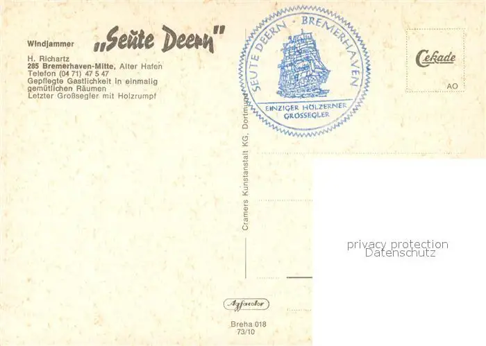 Segelschiffe Windjammer Seute Deern Bremerhaven Segelschiffe postalisch nicht gelaufen nach 1965 Erhaltung siehe scans [PaolaD17] PaolPID1
