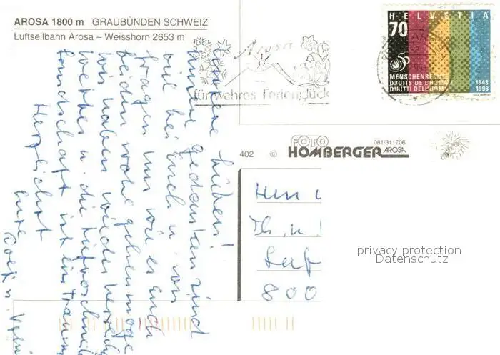 Seilbahn Arosa Weisshorn Seilbahn postalisch gelaufen nach 1965 Erhaltung siehe scans [PaolaD17] PaolPID1