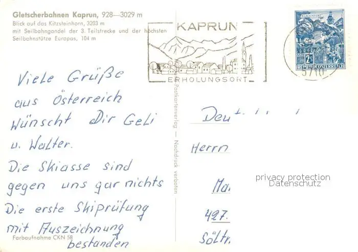 Seilbahn Gletscherbahn Kaprun Kitzsteinhorn Seilbahn postalisch gelaufen nach 1965 Erhaltung siehe scans [PaolaD17] PaolPID1