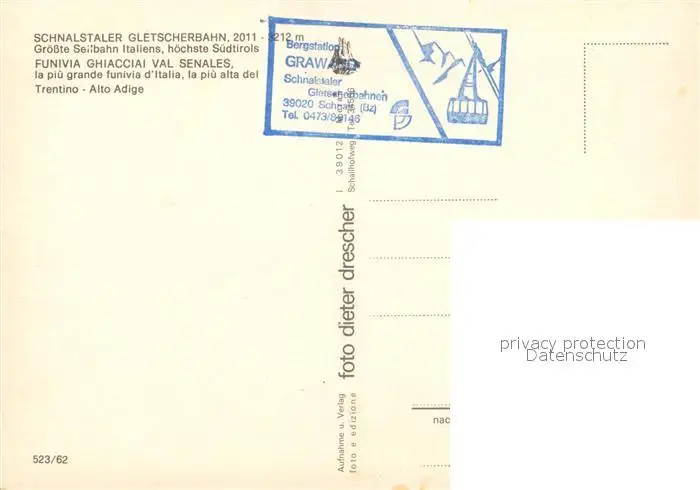 Seilbahn Schnalstaler Gletscherbahn Val Senales Seilbahn postalisch nicht gelaufen nach 1965 Erhaltung siehe scans [PaolaD17] PaolPID1