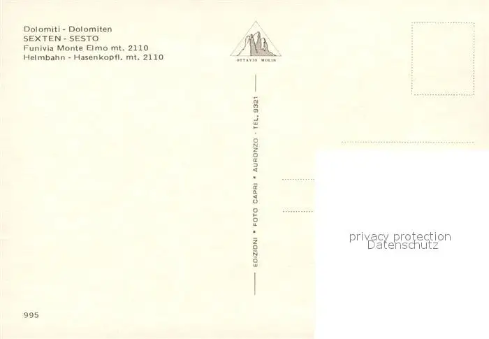 Seilbahn Sexten Helmbahn Sesto Funivia Monte Elmo Seilbahn postalisch nicht gelaufen nach 1965 Erhaltung siehe scans [PaolaD17] PaolPID1
