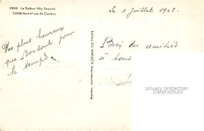 Seilbahn Teleferique Le Saleve Seilbahn postalisch nicht gelaufen 1948 Erhaltung siehe scans [PaolaD17] PaolPID1