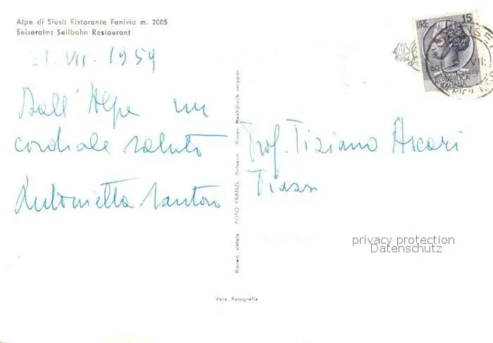 Seiser_Alm Seilbahn Restaurant Seiser_Alm postalisch gelaufen 1959 Erhaltung siehe scans [NatalD47] NataID47