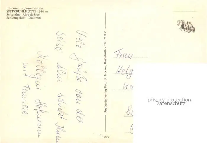 Seiser_Alm Spitzbuhlhuette Seiser_Alm postalisch nicht gelaufen 1921-1965 Erhaltung siehe scans [WerneD78] WernPID7