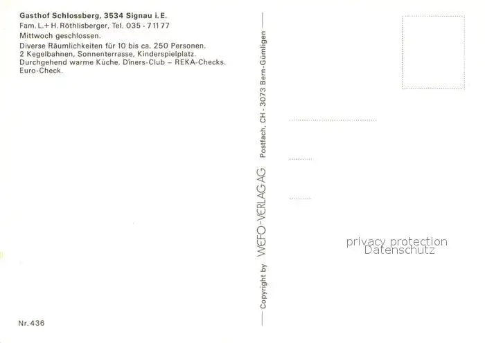 Signau Gasthof Schlossberg Kirche Signau postalisch nicht gelaufen nach 1965 Erhaltung siehe scans [KathaD81] Kathoren