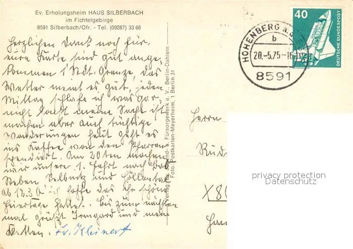 Silberbach_Eger Ev Erholungsheim Haus Silberbach Details Silberbach Eger postalisch gelaufen 1975 Erhaltung siehe scans [WerneD78] WernPID7
