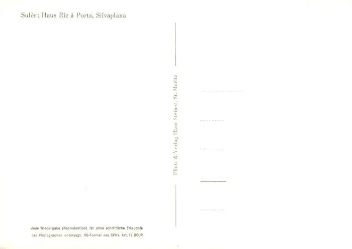 Silvaplana_GR Suler Haus Riz a Porta Silvaplana_GR postalisch nicht gelaufen 1921-1965 Erhaltung siehe scans [WerneD78] WernPID7