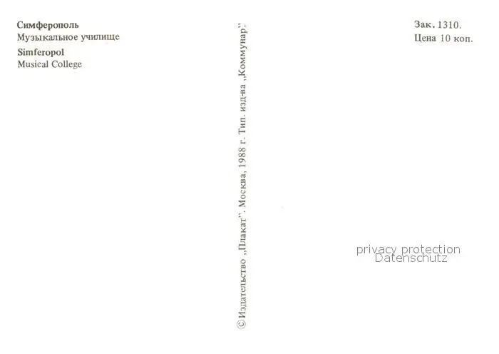 Simferopol Musical College Simferopol postalisch nicht gelaufen 1988 Erhaltung siehe scans [FriedD77] Frierer
