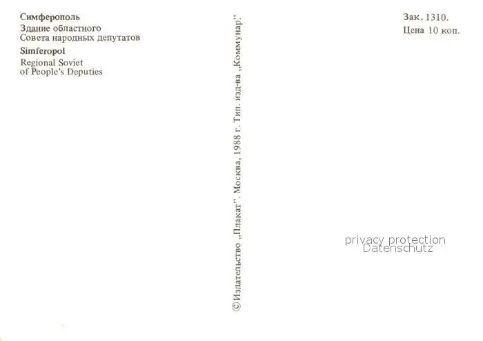 Simferopol Regional Soviet of People's Deputies Simferopol postalisch nicht gelaufen 1988 Erhaltung siehe scans [FriedD77] Frierer