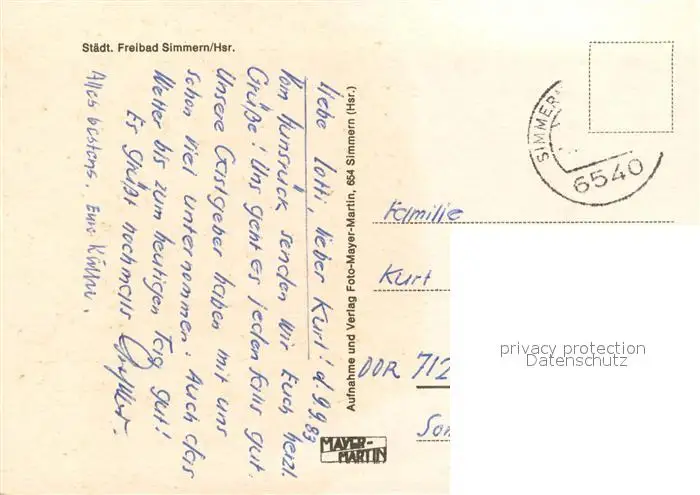 Simmern_Hunsrueck Freibad Simmern Hunsrueck postalisch gelaufen 1983 Erhaltung siehe scans [WerneD78] WernPID7