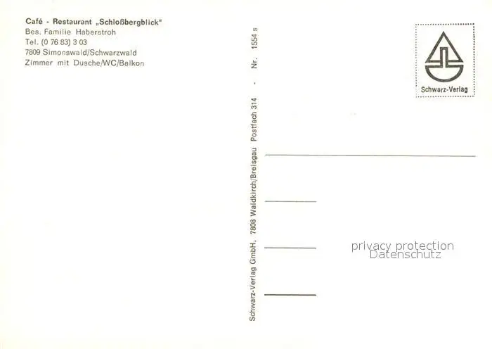 Simonswald_Simonswaeldertal Cafe Restaurant Schlossbergblick postalisch nicht gelaufen nach 1965 Erhaltung siehe scans [WerneD78] WernPID7