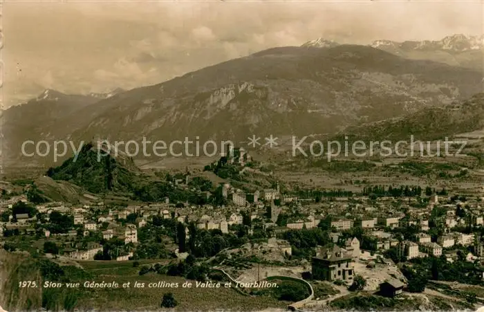 AK / Ansichtskarte Sion__Sitten_Seduno_VS Vue generale et les collines de Valere et Tourbillon