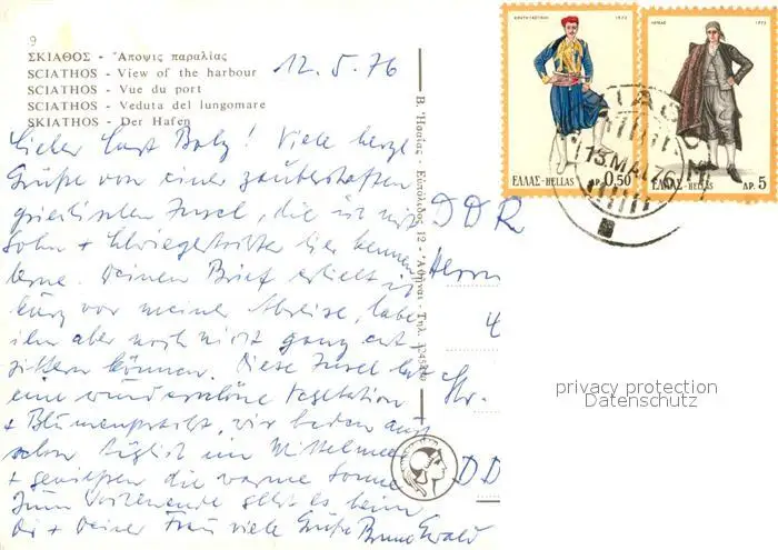 Skiathos Hafen Skiathos postalisch gelaufen 1976 Erhaltung siehe scans [FriedD77] Frierer