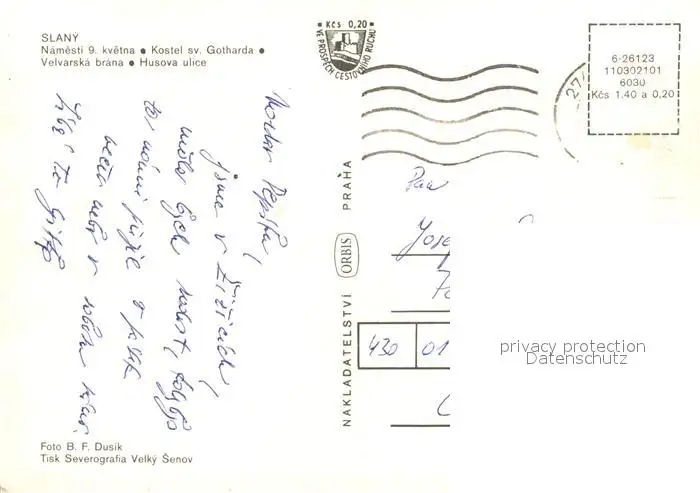 Slany Kirche Marktplatz Slany postalisch gelaufen nach 1965 Erhaltung siehe scans [KathaD81] Kathoren