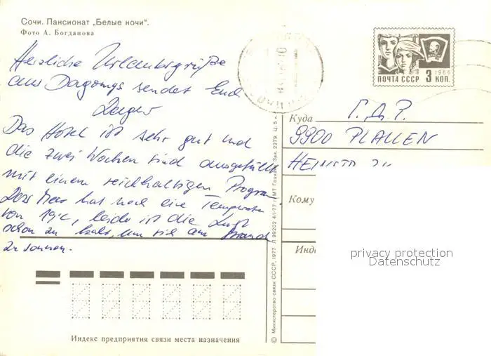 Sochi_Sotschi Pension Belye nochi postalisch gelaufen nach 1965 Erhaltung siehe scans [DarjaD84] DarjID84