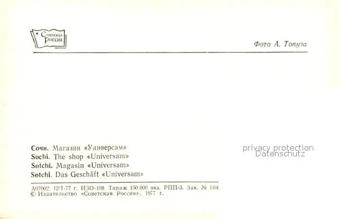 Sochi_Sotschi Universam postalisch nicht gelaufen nach 1965 Erhaltung siehe scans [DarjaD84] DarjID84