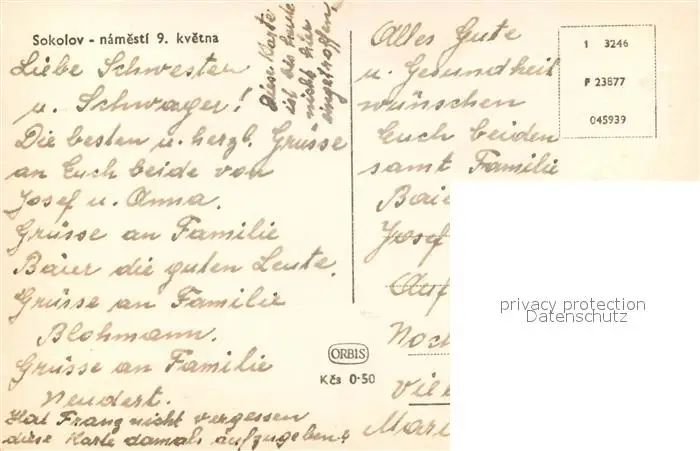 Sokolov Namesti 9. kventna Sokolov postalisch nicht gelaufen 1921-1965 Erhaltung siehe scans [FriedD77] Frierer