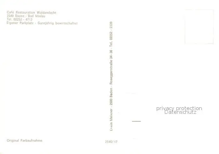 Sooss Cafe Restauration Waldandacht Sooss postalisch nicht gelaufen nach 1965 Erhaltung siehe scans [WerneD78] WernPID7