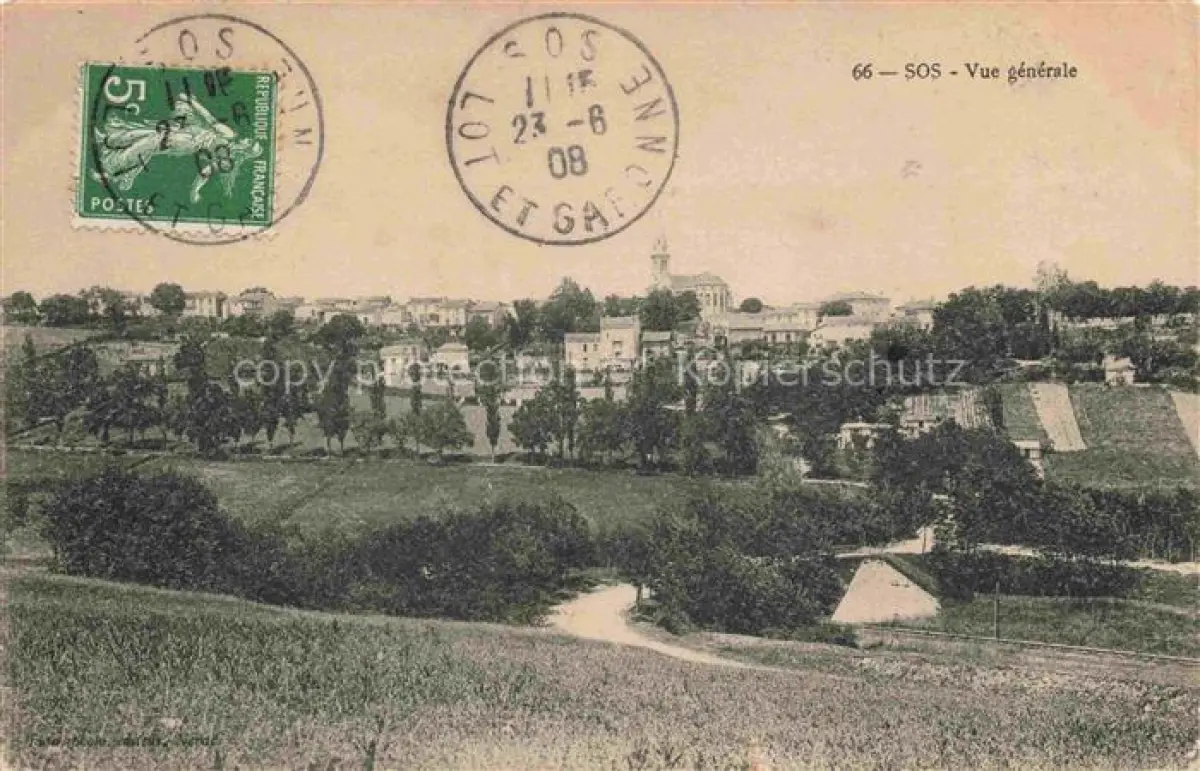 carte postale Sos NERAC 47 Lot-et-Garonne Vue générale postalisch gelaufen Erhaltung siehe scans [FriedD77]