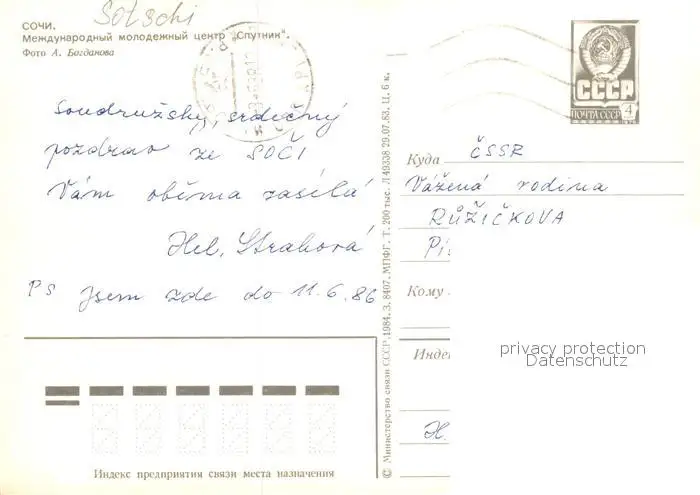 Sotschi_Sochi Hochhaus postalisch gelaufen nach 1965 Erhaltung siehe scans [LiesaD40] LiesID40