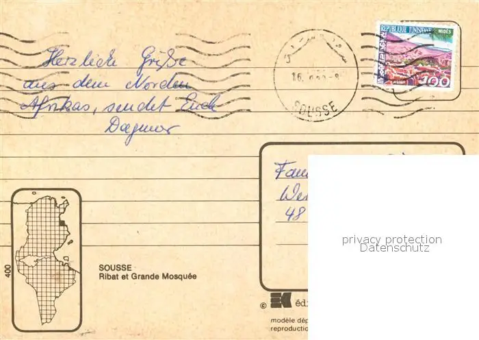 Sousse Vue aerienne Ribat et Grande Mosquee Sousse postalisch gelaufen nach 1965 Erhaltung siehe scans [WerneD78] WernPID7