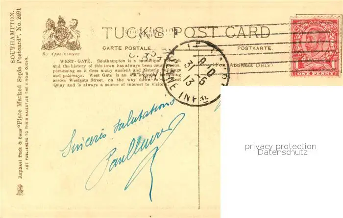 Southampton West Gate Southampton postalisch gelaufen 1913 Erhaltung siehe scans [WerneD78] WernPID7