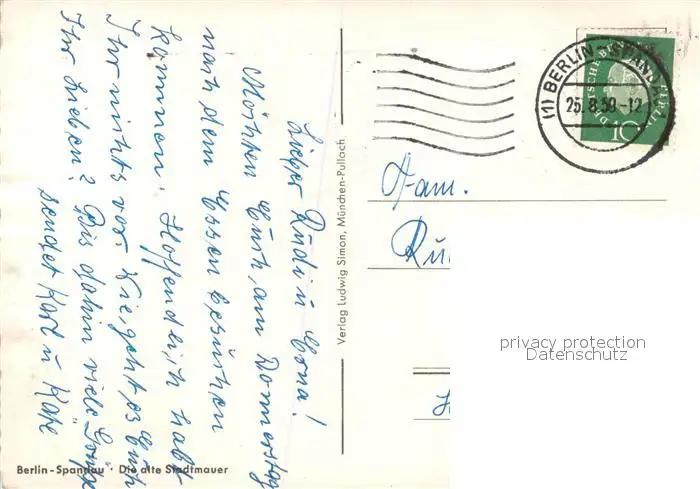 Spandau Alte Stadtmauer Spandau postalisch gelaufen 1959 Erhaltung siehe scans [FriedD77] Frierer