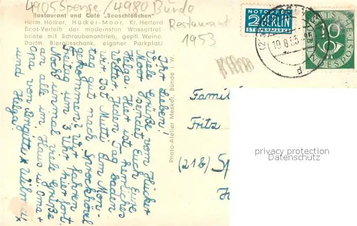 Spenge Huecker Morr Partien Spenge postalisch gelaufen 1953 Erhaltung siehe scans [WerneD78] WernPID7