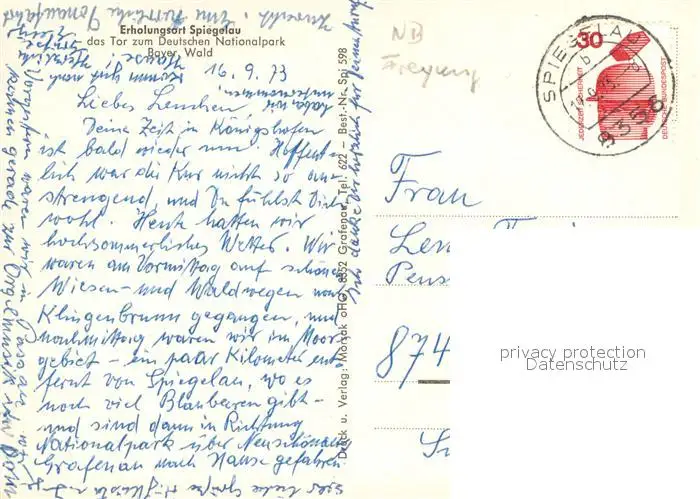 Spiegelau Ortsansicht Spiegelau postalisch gelaufen 1973 Erhaltung siehe scans [WerneD78] WernPID7